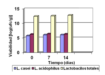 La viabilidad de cada uno de los lactobacilos evaluada tanto en forma conjunta como por vía aislada (individual) no presentó diferencias significativas.