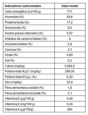 La tabla 5 presenta los resultados de la evaluación química nutricional del producto. De acuerdo a los indicadores nutricionales que presentó el queso desarrollado se puede considerar como un producto que su consumo puede tener efectos fisiológicos efectivos en la mejora de ciertos indicadores sanguíneos como son el LDL-colesterol, HDL-colesterol, triglicéridos, hemoglobina glicosilada y proteína C reactiva ultrasensible.