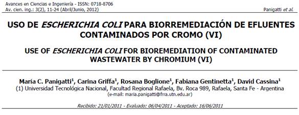 Título del artículo: Uso de Escherichia coli para Biorremediación de efluentes contaminados con Cromo (VI).