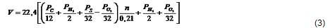 V: es el volumen de gases húmedos (Nm3/kg) para condiciones normales, y,