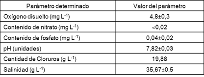 En un rango de temperaturas de 20 a 50 °C la solubilidad del oxígeno disuelto en agua de mar varía de 4,3 a 9 mg L-1, 18, y según la norma cubana NC 25:1999, 19, los valores de oxígeno disuelto en agua marina de buena calidad son mayores de 5 mg L-1, parámetro similar al mostrado en este trabajo.