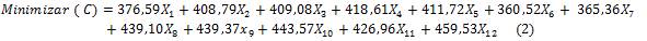Dónde: C: costo mínimo en $/mes.