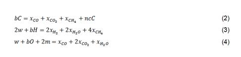 Donde bC, bH y BO son los átomos de hidrógeno, oxígeno y nitrógeno en la forma simplificada de la molécula de biomasa.