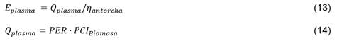 es la energía eléctrica consumida por las antorchas de plasma para convertir un kilogramo de biomasa.