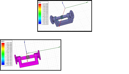 En la figura 3 se muestra el mapa de inducción de campo magnético de (6-9) mT y el vector de campo magnético de (1-1.5) mT generando la máxima inducción magnética al centro de la configuración con una esfera de radio de 0,02 m respecto a la muestra a tratar.