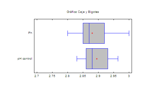 En la figura 5 se muestra que los valores de pH no mostraron diferencias significativas entre ellas. Estos se encuentran fuera de la norma establecida para el yogur natural ya que en su mayoría los valores están por alrededor de 2,8 y 2,9 %.