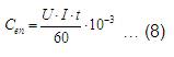 El consumo de energía eléctrica se calcula por la ecuación (8)
