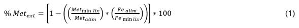 % Met ext porcentaje de extractable del metal bajo análisis, Ni o Co.