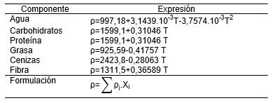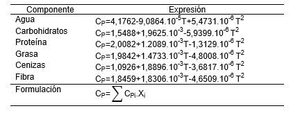 Los modelos reportados en la literatura para la determinación de las propiedades termofísicas de los alimentos son expresados en función de la temperatura y/o la composición.1,13,18,19-21) Estos modelos no toman en cuenta la interacción entre los componentes del alimento sobre las propiedades termofísicas, no obstante, se considera que sus resultados representan adecuadamente el comportamiento de estas.22-25 Aunque de manera general se reconoce la dependencia de las propiedades termofísicas con la temperatura, numerosos trabajos reportados en la literatura proponen modelos sencillos basados solo en el contenido de agua del producto,tomando en consideración el elevado contenido de este componente en sistemas alimentarios.La disponibilidad de modelos sencillos y con resultados confiables puede constituir una adecuada vía para la realización de cálculos térmicos, lo cual ha sido propuesto por diferentes autores estando resumidos en la literatura.10,11,13,17,26-29
