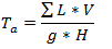 (2)Se conoce como el tiempo de inicio (arranque en algunas literaturas) del agua y se define como el tiempo necesario por una masa de agua a una altura determinada (H) y desde el reposo, para alcanzar la velocidad (V) a través de una longitud de tubería (L). El rango de variación típico de esta constante es ( 0.5 s≤𝑇 𝑎 ≤4 𝑠) a plena carga y cambia con el punto de operación.(20) Es usual, particularmente en las centrales cubanas, que el conducto forzado no sea de diámetro único, razón por la que en la expresión 2 se expresa como sumatoria de longitudes por las velocidades correspondientes. Es una constante muy importante en el diseño de centrales hidráulicas 11 y para turbinas de reacción se toma en consideración además, el aporte a esta constante de la cámara espiral de las turbina.13