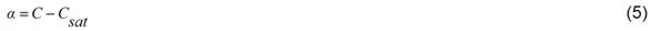 Donde C es la concentración de la sustancia en el instante dado (mg/L) y Csat la concentración de la solución saturada (mg/L) a una temperatura específica.