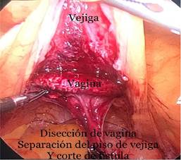 Con estos datos se programó, cirugía de resección de fistula vesico-vaginal laparoscópico extravesical.