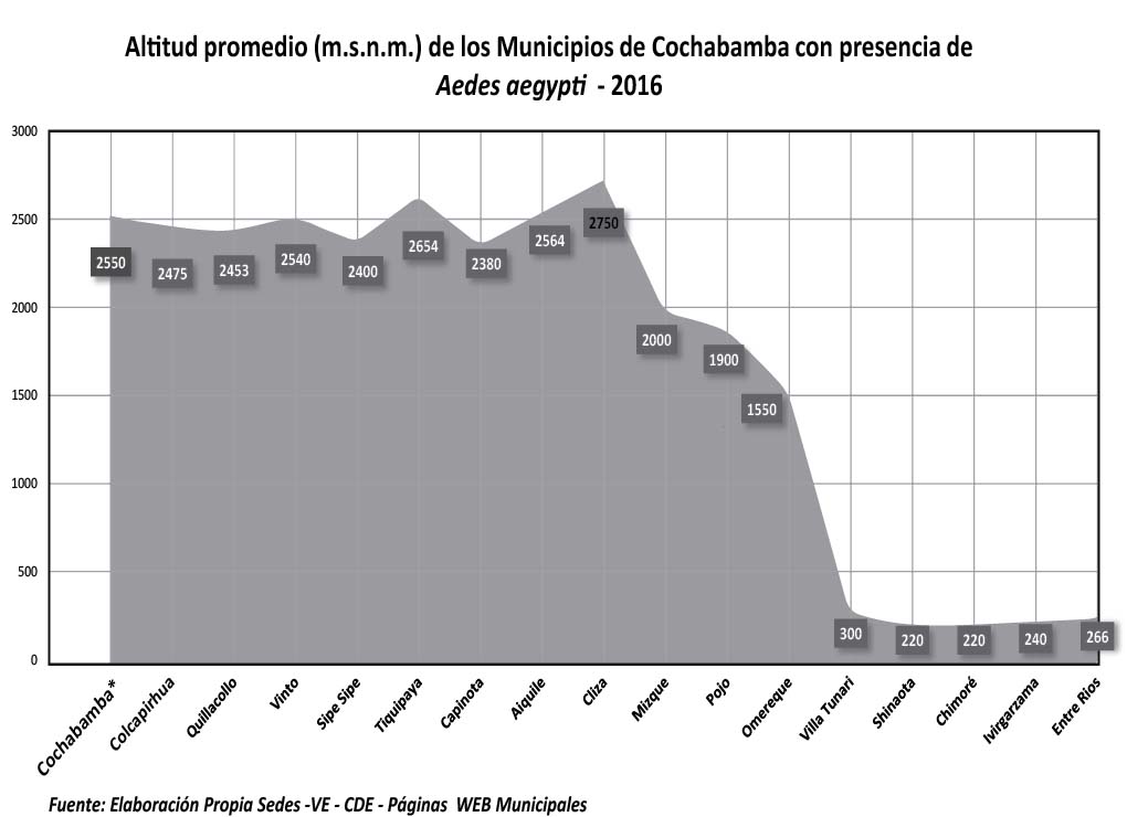 El registro en Cochabamba del Aedes aegypti en altitudes por encima de los 2550 m s.n.m., es una condición de ocurrencia en países como México y Colombia, trazan el riesgo potencial de transmisión autóctona de dengue y otros arbovirus en municipios donde historicamente no existía transmisión por este vector, debido a su altitud actuando esta como barrera 9.
