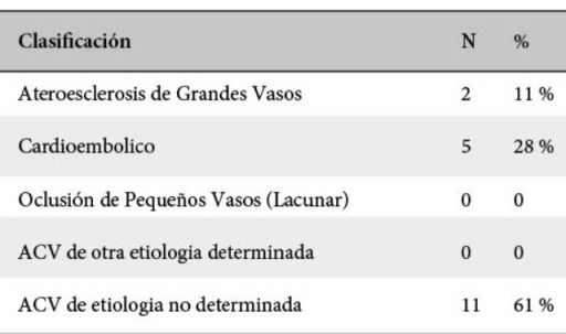 En base a los criterios de TOAST ( 6) , se pudo evidenciar el diagnóstico etiológico más probable en cada paciente. ( Tabla 4).