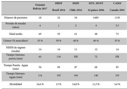 El grupo incluido en el estudio se limita a aquellos pacientes que recibieron trombolitico intravenoso. ( Tabla 1)