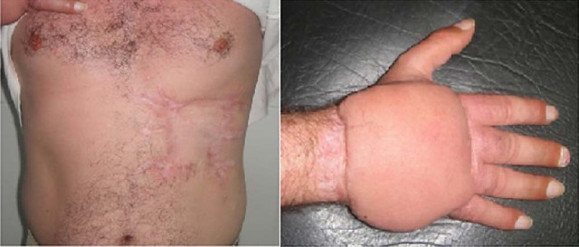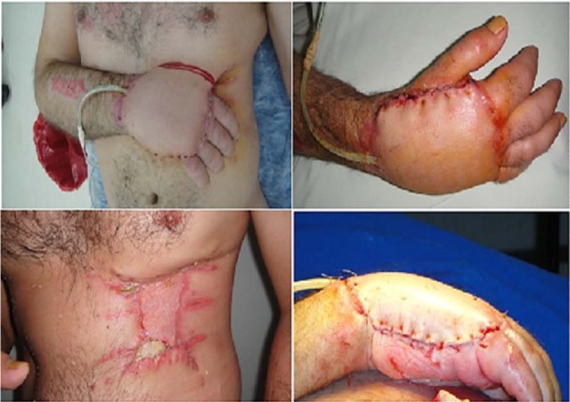 Debido a la localización, tamaño y naturaleza de la lesión, disponibilidad de piel y aspecto cosmético del sitio donante, además de la comodidad del paciente, el colgajo toraco abdominal fue considerado como una alternativa más para la reconstrucción de mano.