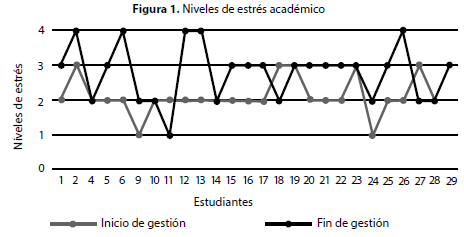 Ningún estudiante experimentó el nivel 4 de estrés al inicio de la gestión.