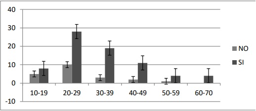 Entre 20 y 40 años es la población que más utiliza plantas medicinales, pero esto puede estar influido por las características demográficas propias de estas comunidades, pues son asentamientos con una pirámide poblacional de base ancha y una cúspide bastante estrecha, población predominantemente joven( Figura 4).