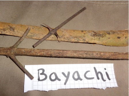 Uncaria guianensises, bayachi o bayabachi en yuracare, es un árbol trepador, tiene espinas en forma de garras o uña de los gatos, sus hojas son elípticas, su color puede ser de rojas a guindas o blancas según las especies. Está disponible en todas partes, no solo en estas comunidades sino en toda la región tropical.