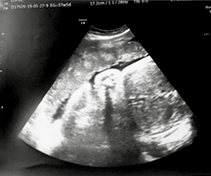Crystalloid solutions were administered at a rate of 15ml/kg, a female newborn was obtained with an APGAR of 8 at one minute and APGAR 9 at 5 minutes, and oxytocin 3 IU was administered intravenously as a bolus in three minutes.