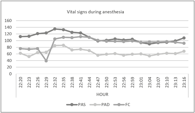 Alterations in the electrocardiogram were evidenced without repercussions on blood pressure ( Figure 3). At the conclusion of the procedure, a cardiological assessment was requested