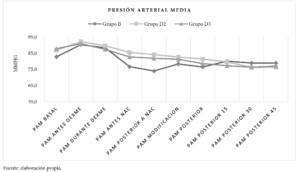 Para mencionar los cambios hemodinámicos, en cuanto a la presión arterial media se encontró más estable en el grupo D2 con menor episodios de hipotensión sin tener repercusiones hemodinámicas que afecten al binomio madre?niño sin significancia estadística contra el grupo D3.