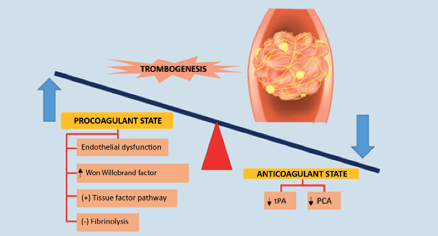 The coagulation cascade is activated in viral infections such as COVID-19; there is an imbalance between procoagulant and anticoagulant homeostatic mechanisms in this pathology; as a result of increased inflammatory activity fibrinogen levels increase and thrombi form 29, 30( Figure 3).