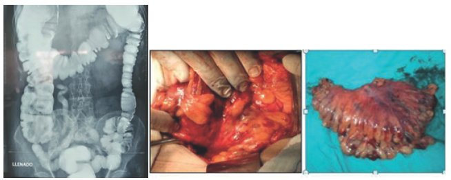 CIRUGÍA: dolicomegasigmoide, descendente y sigmoides elongados y enrollado a nivel de unión rectosigmoidea y ángulo esplenocolónico con mesosigmoiditis retráctil, isquemia de sigmoides.