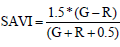 (9)In addition, the indices Ratio Green/Red (GR) (Equation 10) and SAVI green (SAVI) modified by Li et al. (2010) (Equation 11) were tested.