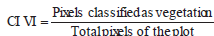In addition, the vegetation cover index was determined for each vegetation index (generated by logistic regression) (CI VI) (Equation 14).