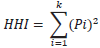 To evaluate the degree of concentration of agricultural farms in Paraná, the Hirschman-Herfindahl index (HHI) was used. The HHI refers to the sum of the squares of a firm’s market share in an industry (HIRSCHMAN, 1964). This share can be analyzed through any variable that can represent it. In the case of this study, the share of the agricultural farms in Paraná is used to verify if there is a concentration in this segment and to verify the change in this index in the years analyzed. Thus, we have the following: