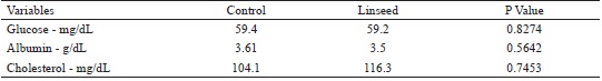 In the present study, no significant difference (P > 0.05) was observed between daily average weight gains. This indicates that linseed supplementation had no influence on tissue deposition. The average weight and daily gain are presented in Table 8.