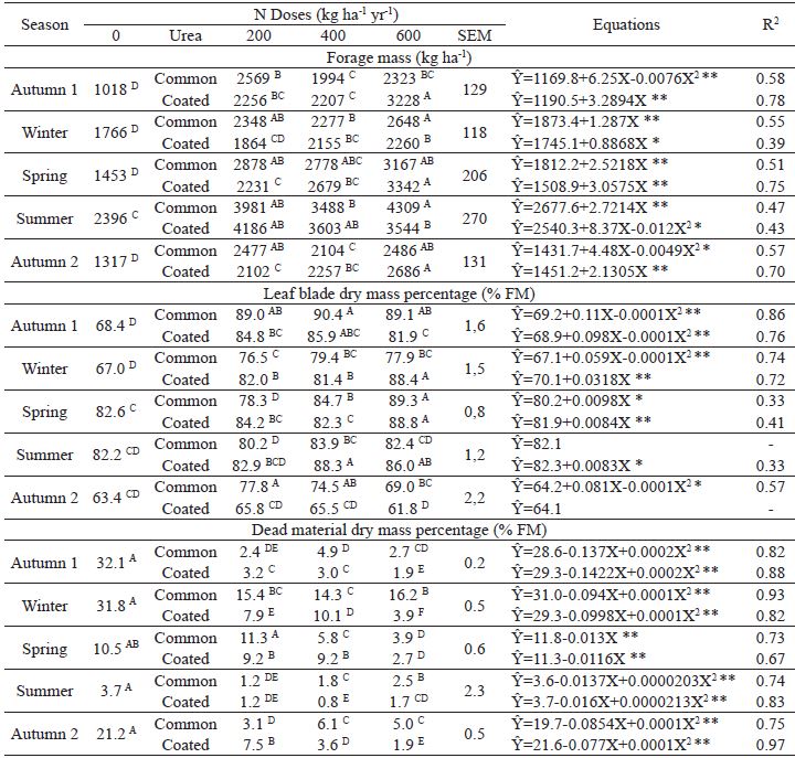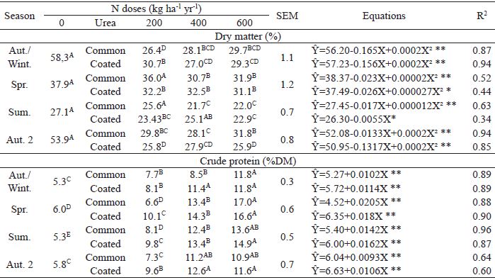 Key words: Coated ureaCoated urea,Nitrogen fertilizationNitrogen fertilization,Panicum maximumPanicum maximum,Seasons of the yearSeasons of the year.