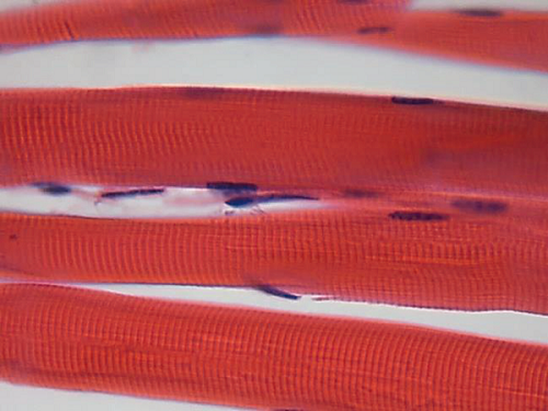 Sarcomere length measurements were performed on sample portions (1.5 cm length x 1 cm width x 0.5 cm thick) stored in a 50-ml falcon tube containing 10% formaldehyde solution for 24 h. The formaldehyde solution was subsequently replaced with a 70% alcohol solution. After 1 h, the 70% alcohol solution was renewed and each sample remained in storage until processing. When analyzed, samples were removed from the 70% alcohol solution, embedded in paraffin, and sent to the histology laboratory at UEM where sections were made from the blocks using a microtome. The sections were mounted on slides and examined to measure sarcomere length as described below.