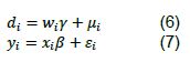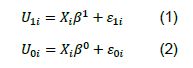 Los / representan un vector de información observable y medible de características del individuo (por ejemplo sexo y zona de residencia, entre otras), mientras que los términos de error aleatorios / y Eoi representan elementos estocásticos específicos y sólo conocidos por el individuo (es decir, no son observables en los datos disponibles por los investigadores).