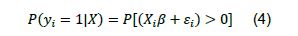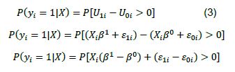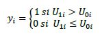 Debido a la dificultad de contar con mediciones de utilidad individual, no se observan las ecuaciones (1) o (2), sino que se dispone de una variable / que brinda información sobre la decisión de usar (/) o no usar (yi=0) métodos anticonceptivos. Una / nos muestra que la utilidad para el individuo i, de tener relaciones sexuales usando algún método anticonceptivo es mayor que la recibida sin el uso de estos. Lo anterior se puede representar de la siguiente forma: