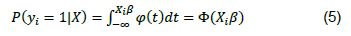 Bajo el supuesto de que / es independiente de las / y de que sigue una distribución normal estándar, el Modelo Probit es apropiado para analizar decisiones binarias (Wooldridge, 2010). La forma funcional del modelo es la siguiente (Greene, 2012):