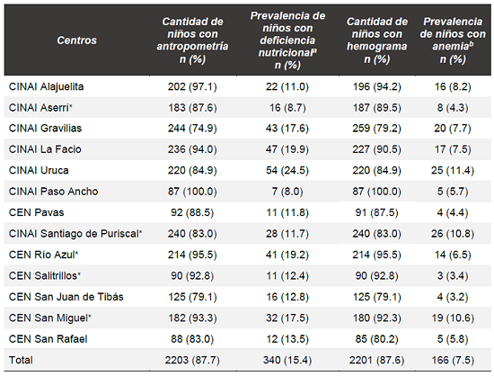 Keywords: prevalence, anemia, malnutrition, nutritional status, child, preschool, socioeconomic factors, Costa Rica.