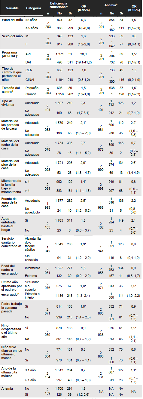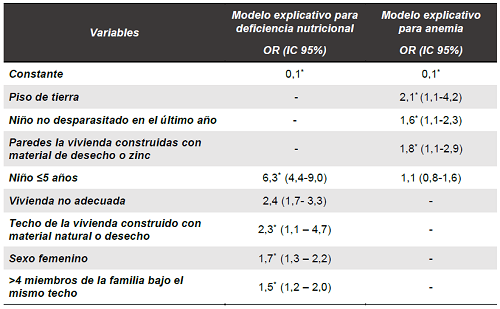 Deficiencia nutricional, anemia y posibles factores de riesgo asociadosTabla 6