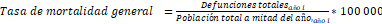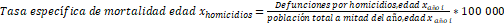2. Se calcularon tasas brutas de mortalidad y tasas específicas de mortalidad a causa de homicidios para la región, por sexo y edad desplegada, mediante las siguientes fórmulas: