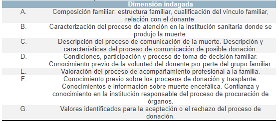 Estas observaciones coinciden con otros estudios que expusieron el desconocimiento del deseo del dador en relación con el tema como uno de los principales factores para el rechazo familiar (Aranda et al., 2018; Pessoa et al., 2013).