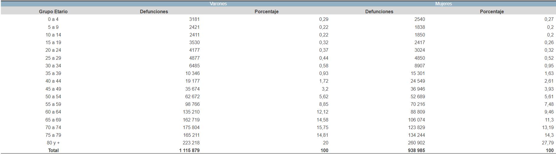Sin embargo, es importante resaltar que al plantearse un modelo basado en cifras provenientes del Sistema de Estadísticas Vitales el registro de las defunciones está, en cierta medida, sujeto a errores de clasificación y registro y, si bien, los profesionales de la salud cuentan con capacitaciones al respecto, esto no deja de ser una limitación para las conclusiones arribadas en este trabajo. Con todo, en este punto también radica la fortaleza del modelo, dado que al trabajar con múltiples series temporales y, más aún, con sus suavizados, se compensan y reducen los errores y los sesgos tanto temporales como los vinculados a los distintos grupos etarios.