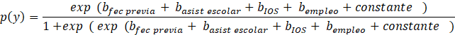 Con el propósito de analizar si la fecundidad y los factores socioeconómicos de las mujeres intervienen en la ocurrencia del evento en estudio, se ajustaron dos modelos estadísticos de análisis en tiempo discreto, uno para cada cohorte de nacimiento (Allison, 2014), mediante la siguiente expresión:
