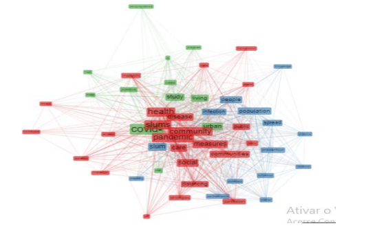Abstract: The covid-19 pandemic has had various social impacts globally, however, the favelas and their communities are considered groups with greater vulnerability. In the absence of basic sanitation, precarious residences, low income or poverty, and unemployment are factors that differ in the impacts generated by covid-19 on this specific public, compared to other localities. I have these parameters established as of great concern, determined the question that is the focus of this research: What is being produced by researchers on the subject of COVID-19 in vulnerable territories and in favelas? In order to answer the research question and considering that there have been no studies that address this issue from a systematic review, this article aims to analyze the scientific production in journals indexed in the Web of Science collection on COVID-19 and favelas. As results, it is highlighted the amount of studies produced in India and in Brazil, despite few cited, and that the co-occurrence map allows to focus on the potential of the receptivity of thematic studies on populations and their local reality of vulnerability.