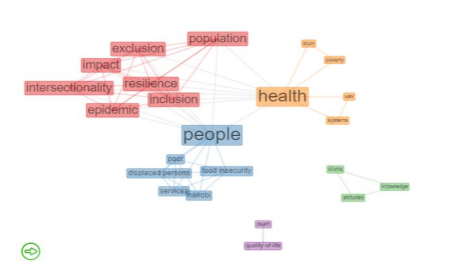 As figuras 3 e 4 realçam as temáticas e as discussões traçadas quando o assunto é comunidades pobres e favelas. Destarte, que a ciência da informação sendo ela área de estudo voltada para a análise das informações, pode evidenciar o pensamento da academia, dos pesquisadores que estudam territorios vulneráveis e ambientes de favelas, dão atenção a estudos sobre exclusão, sobre inclusão, resiliencia e saúde, estudos que buscam melhorar o social e prover modificações nas condições de vida