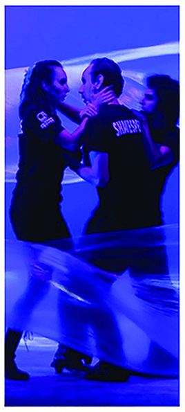 Aquí, los personajes aparecen con ropa de trabajo negra, como si el código de vestimenta y sus repercusiones fueran privativos del mismo mundo confuso que representa Iliria. En el otro nivel se afirma el sentido determinante del vestuario como un elemento que norma la apariencia y el rol social del personaje. La puesta en escena anuncia parte de su postura cuando reúne motivos de vestimenta donde lo femenino y lo masculino se emparentan en un único concepto.