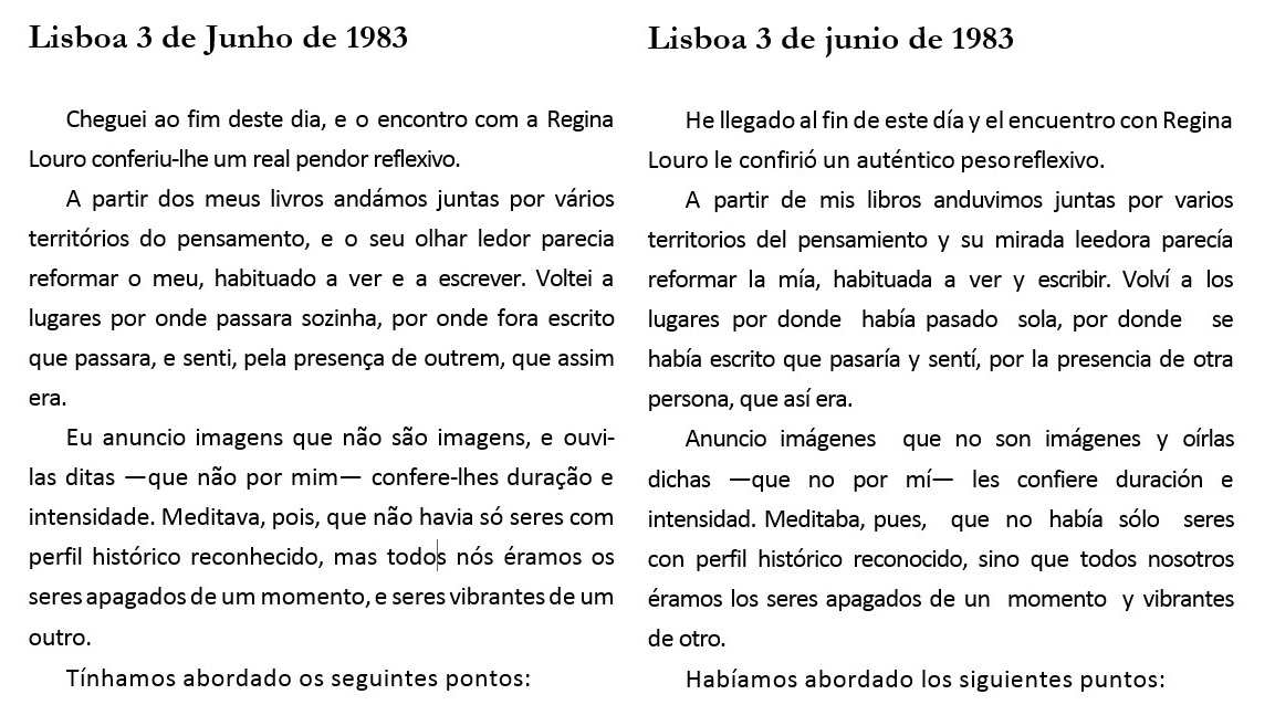 El texto presentado aquí pertenece a Um Falcão no Punho (1985), incluido en la trilogía Diários. Es representativo del pensamiento de Llansol en el momento de su regreso del exilio. La traducción incorpora las sugerencias aceptadas y las correcciones.