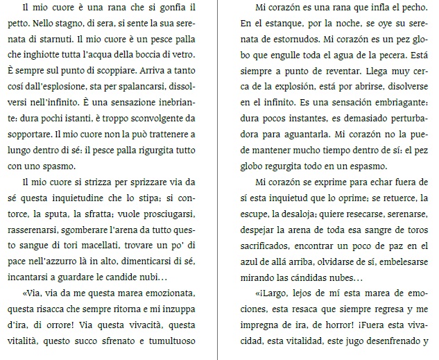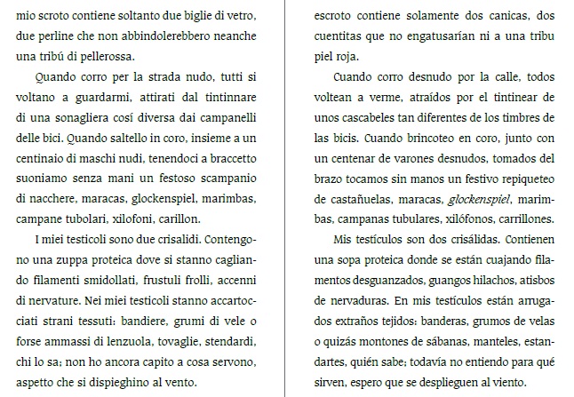 Ignoraba que en México, donde se habla un español con tantas diferencias dialectales y sentimentales, los mexicanos solamente podían leer a los autores extranjeros en español ibérico, lo cual, señores míos, es como si nosotros los italianos estuviéramos obligados a leer a Philip Roth o a Faulkner en dialecto genovés. ¡Qué vergüenza! La traducción de mi novela al español mexicano es un acto de justicia social e intelectual. ¡Arriba la revolución literaria! (Matteucci, 2016).