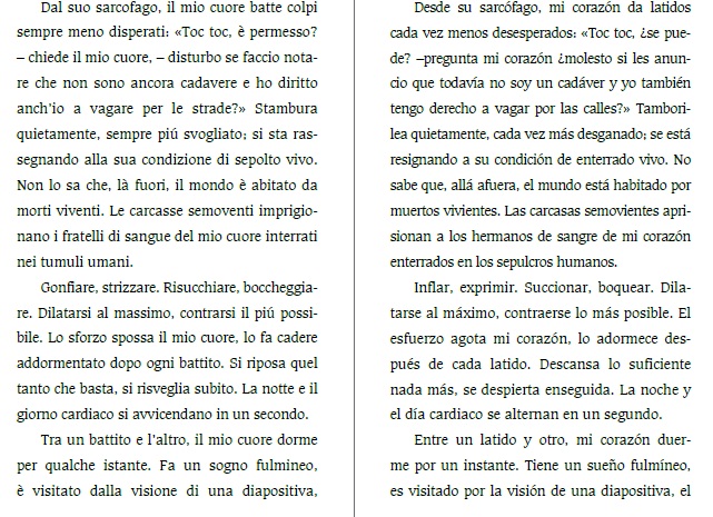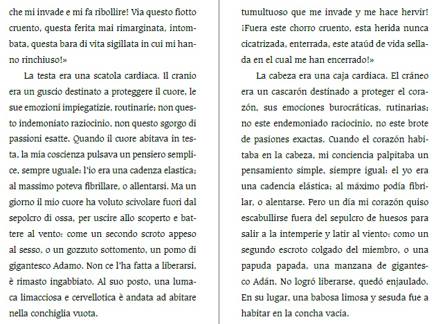 A continuación invitamos a leer dos fragmentos de nuestra traducción mexicana de Cuerpo, de Tiziano Scarpa, que es un muestrario del cuerpo humano en cincuenta breves ensayos líricos, un catálogo de partes por re-conocer compuesto de ironía, imágenes poéticas y a veces meras ocurrencias en torno a la anatomía del autor. La de Scarpa parece la premisa de cualquier otro poeta: decir nuevamente el mundo. Volverlo extraordinario. Nuestro contacto cotidiano con nosotros mismos y las partes físicas que nos componen conlleva un conocimiento previo de los protagonistas de Cuerpo. Pero el lector se enfrenta a giros de lenguaje que le hacen percibir de otra manera su propio cuerpo. El corazón de Scarpa es un hipócrita que, contrariamente a su fachada generosa y altruista, practica un amor codicioso, ensimismado. Si los testículos son por convención epítome de fuerza y valentía, para el autor se vuelven dos peras de boxeo. Uno podría decir que las propiedades de las gónadas (la fragilidad) existían a priori. Virtud, entonces, del poeta sacarlas a la luz.