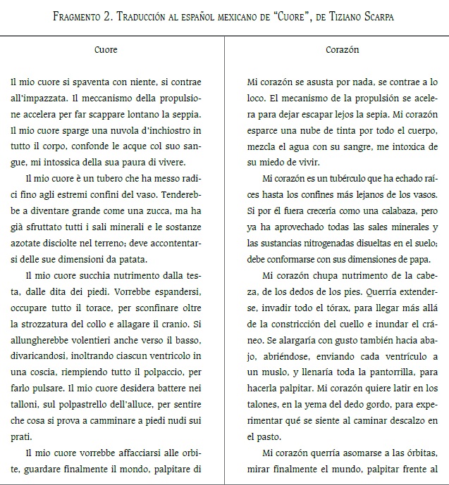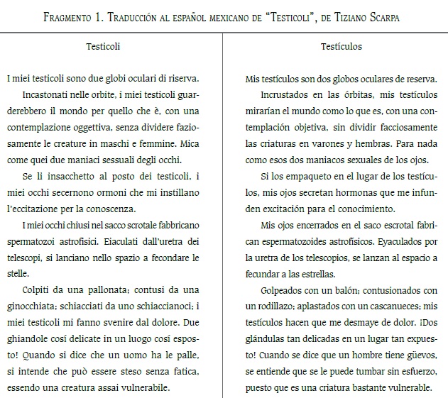 Abstract: The fragments of Cuerpo, by Tiziano Scarpa, that are included in this article, are the result of the work of Laboratorio Trãduxit, a workshop of collective translation from Italian to Spanish, coordinated by Barbara Bertoni, Italian, and Tomás Serrano Coronado, Mexican, in the Italian Institute of Culture Mexico City. In this workshop they translate with the aim of publishing and they respect the participants’ language variety. Four different translated versions of Cuerpo were produced from its original version in Italian: to Mexican Spanish, to Argentinian Spanish, to Peninsular Spanish and to Cuban Spanish. In this paper we include two fragments of the Mexican Spanish translation as well as the experiences we had during this process.